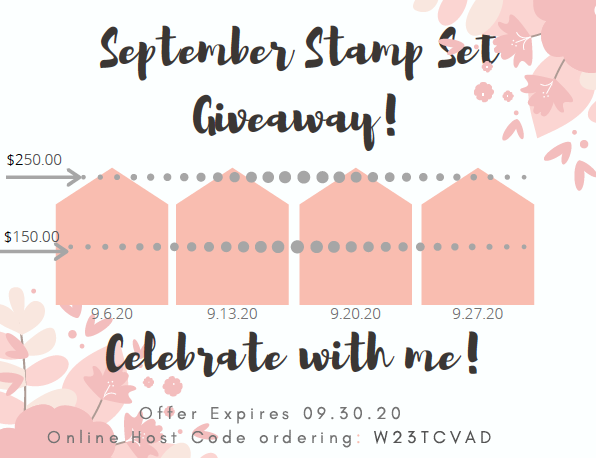* Prize winner(s) – each time order totals reach $250.00 in retail sales I will be giving away ONE stamp set!